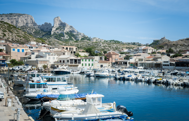 Direction la cité phocéenne, ses contrastes, et le rocher blanc des Calanques.