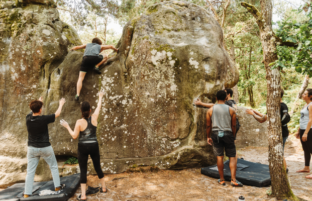 Avec son séjour escalade et yoga à Fontainebleau, L’Escapade vous guide à travers cette incroyable forêt de blocs, entre pinèdes, fougères et sablières.